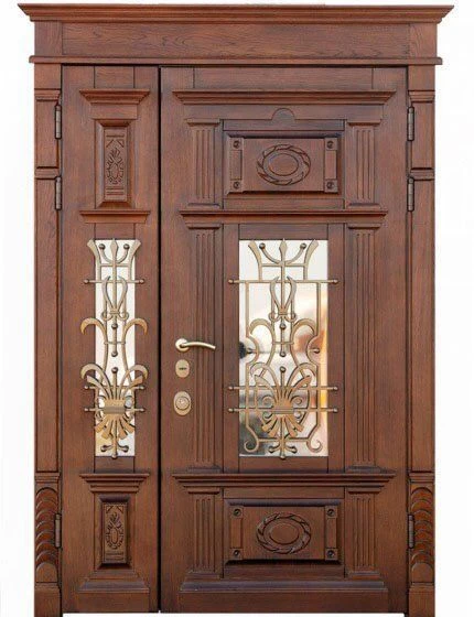 Входные двери. Они сочетают металлический каркас с массивной отделкой, обеспечивая надежную защиту от взлома, а также отличные тепло- и шумоизоляционные характеристики. Варианты массива позволяют добиться солидного и эстетичного внешнего вида, сочетающегося с любым фасадом.