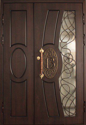 Поговорим об отделке. Вариантов декора дверей много. В большинстве случаев, для отделки элитных дверей используется массив натурального дерева или натуральный шпон с фрезеровкой. Цвет двери так же делается по желанию заказчика. Очень красиво и представительно выглядят двери с ковкой и стеклом.