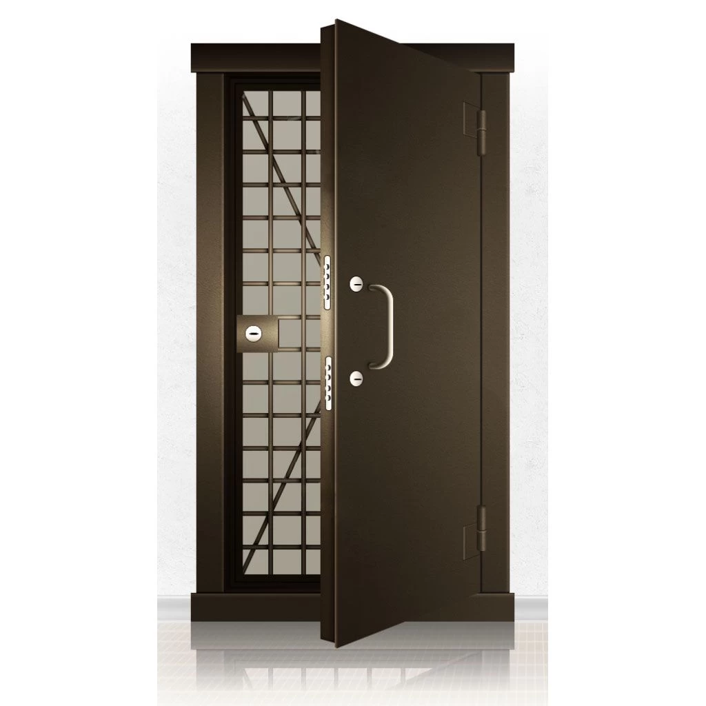 Металлические двери КХО и КХН представляют собой входные блоки, обладающие высоким уровнем взломостойкости и состоят из трех основных элементов: усиленного каркаса, сплошного металлического полотна и решетчатой двери. Дверной блок изготавливается из стального уголка 100*100 мм. Места крепления блока к стене цементируются и закрываются стальными наличниками шириной 40 мм. Крепеж заходит вглубь стены на 80 мм. В конструкции внешней створки монтируются ребра жесткости, для обшивки используется сталь толщиной не менее 3 мм. Внутренняя решетка изготавливается из прутка диаметром 16 мм. Размер ячеек решетки должен составлять не более 15 на 15 см. В точках пересечения прутья надежно приваривают друг к другу. В КХО и КХН необходимо поддерживать определенную температуру и влажность. Для этого внутреннее пространство глухой двери заполняется теплоизоляционным материалом, а по периметру двери приклеивается уплотнитель. Такие двери оборудуются замками с повышенным уровнем взломостойкости. Специализированные двери КХО и КХН в Любиме могут быть оснащены сигнализацией, в конструкции могут быть проушины для навесного замка и элементами для опечатывания. Если идет речь о двери в комнату хранения оружия, в створке оборудуется окно для выдачи оружия и спец. средств, которое накрывается стальной дверцей.