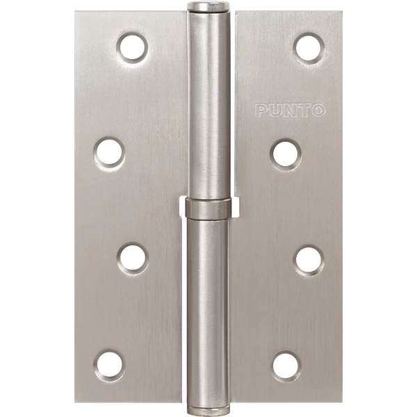 Съемная дверная петля Punto 113/HD-4 правая изготовлена из стали, подходит для дверей правого открывания. Гальваническое покрытие прошло тест на устойчивость к коррозии в соляном тумане и соответствует 1 классу ГОСТ. В петле установлены втулка-подшипник и стальной стержень, что обеспечивает работоспособность 200 000 циклов открывания/закрывания. Максимальная нагрузка на 2 петли 30 кг, на 3 петли 40 кг. Размер петли: 100x70x2,5. Цвет: матовый никель. Саморезы в цвет изделия в комплекте. Упаковка: подвес (пакет с картонкой).