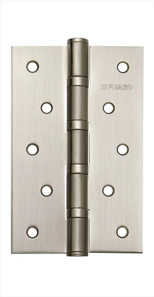 Универсальная дверная петля Fuaro 4BB изготовлена из стали, подходит для дверей правого и левого открывания. Предназначена для установки на массивные деревянные двери. Гальваническое покрытие прошло тест на устойчивость к коррозии в соляном тумане - более 96 часов, что соответствует высшему 4 классу стойкости покрытия. Края петель прошли дополнительную полировку. В петле 4BB установлены четыре внутренних подшипника и стальной стержень, что обеспечивает 1 млн циклов открывания/закрывания. 4 внутренних подшипника обеспечивают плавный и бесшумный ход, защищают от проседания двери. Максимальная нагрузка на 2 петли 80 кг, на 3 петли 100 кг. Размер петли: 150x95x3. Цвет: матовый никель. Саморезы в комплекте. Гарантия: 5 лет. Упаковка: картон.