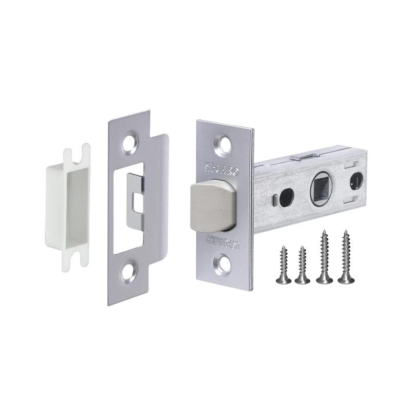 Дверная защелка с пластиковым механизмом Fuaro P12 серии PLASTIC изготовлена в соответствии с требованиями ГОСТ 5089-2011. Предназначена для установки в деревянные межкомнатные двери. Корпус выполнен из стали с надежным гальваническим покрытием. Защелка легко устанавливается, подходит для дверей левого и правого открывания. Ударопрочный пластиковый механизм обеспечивает бесшумность работы защелки. Защелка P12 с усиленной пружиной имеет высший 4 класс надежности (250 000 циклов открывания/закрывания). Отверстия под стяжные винты находятся на расстоянии 37-41 мм. Размер бэксета - 45 мм. Возможна установка дверных ручек на стяжные винты для более прочного крепления. В комплектацию входят: ответная планка с декоративной вставкой и крепежная фурнитура в цвет изделия.