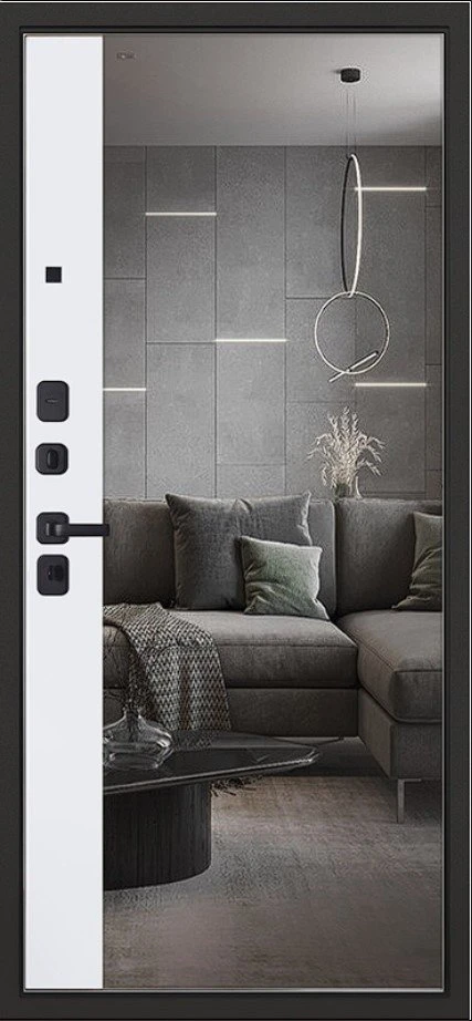 Надежная входная Дверь Scandi с зеркалом премиум класса по цене 44 723 руб. Большая толщина стали защитит от проникновения в ваш дом, квартиру или коттедж. Используется очень качественная фурнитура: замки, цилиндры, ручки, защелки. Покрытие и отделка двери изготовлено под внимательным контролем производителя. Дверь имеет долгий срок службы и гарантию.