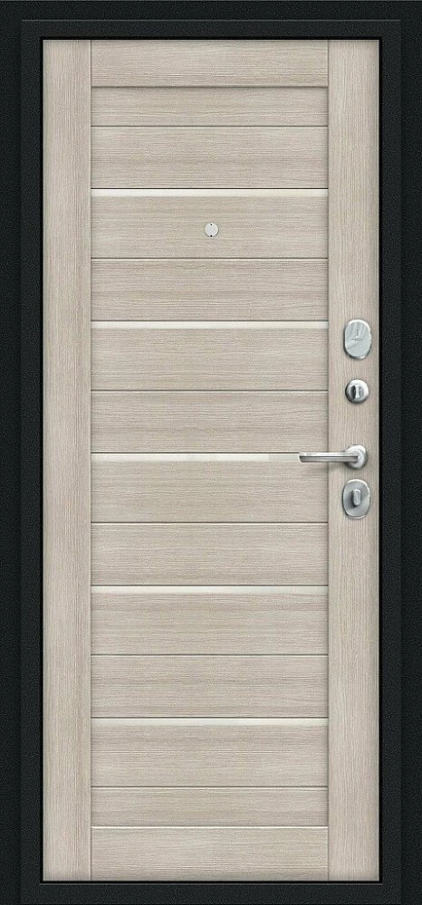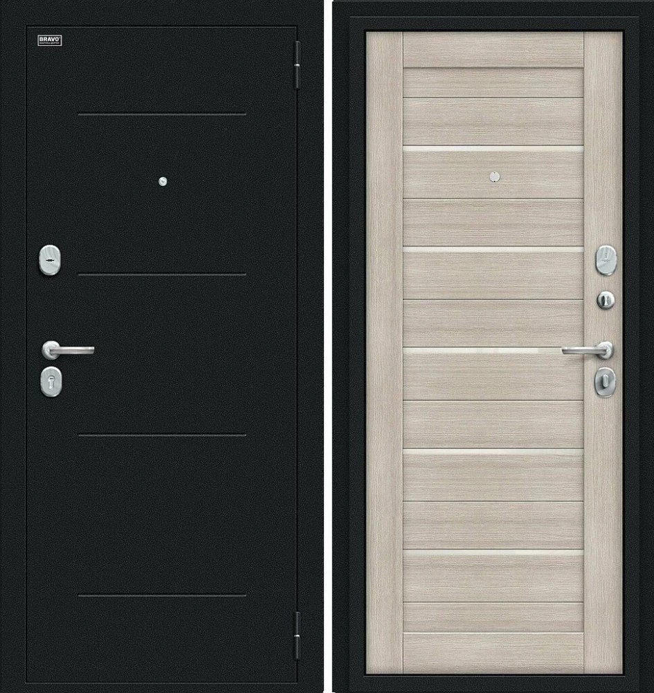 Надежная входная Браво Техно Kale Букле черное/Cappuccino Veralinga премиум класса по цене 33 673 руб. Большая толщина стали защитит от проникновения в ваш дом, квартиру или коттедж. Используется очень качественная фурнитура: замки, цилиндры, ручки, защелки. Покрытие и отделка двери изготовлено под внимательным контролем производителя. Дверь имеет долгий срок службы и гарантию.