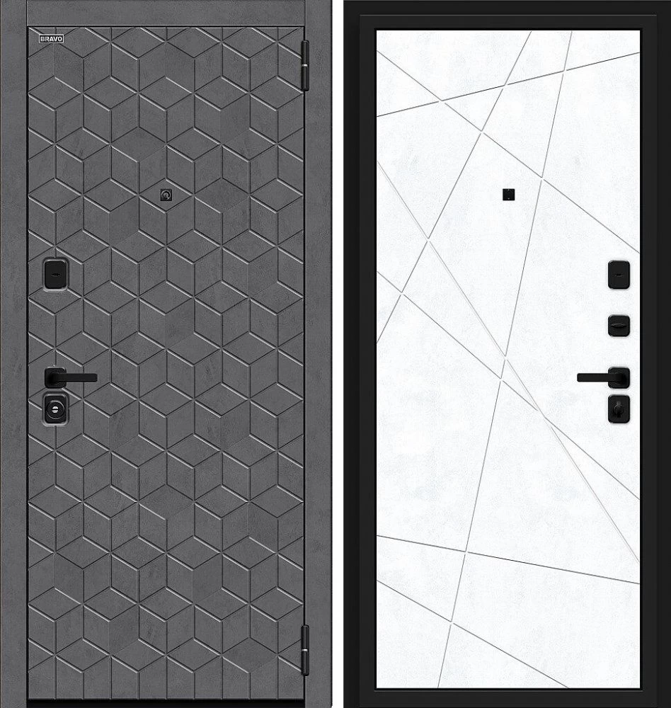 Надежная входная Дверь Браво Кьюб (RBE) Slate Art/Snow Art премиум класса по цене 38 133 руб. Большая толщина стали защитит от проникновения в ваш дом, квартиру или коттедж. Используется очень качественная фурнитура: замки, цилиндры, ручки, защелки. Покрытие и отделка двери изготовлено под внимательным контролем производителя. Дверь имеет долгий срок службы и гарантию.