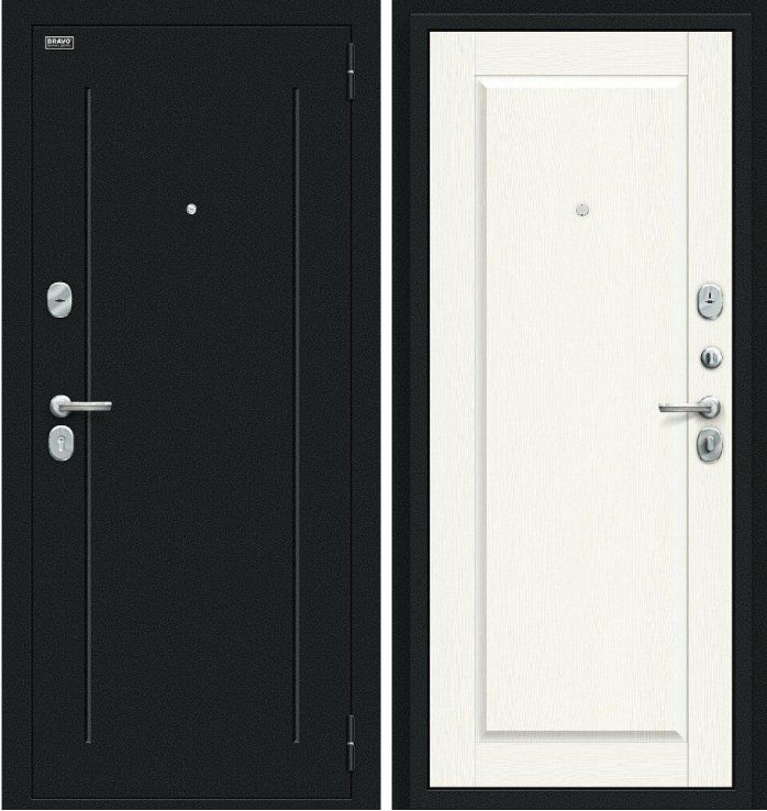 Надежная входная Дверь Браво Сьют Kale Букле черное White Wood премиум класса по цене 35 893 руб. Большая толщина стали защитит от проникновения в ваш дом, квартиру или коттедж. Используется очень качественная фурнитура: замки, цилиндры, ручки, защелки. Покрытие и отделка двери изготовлено под внимательным контролем производителя. Дверь имеет долгий срок службы и гарантию.