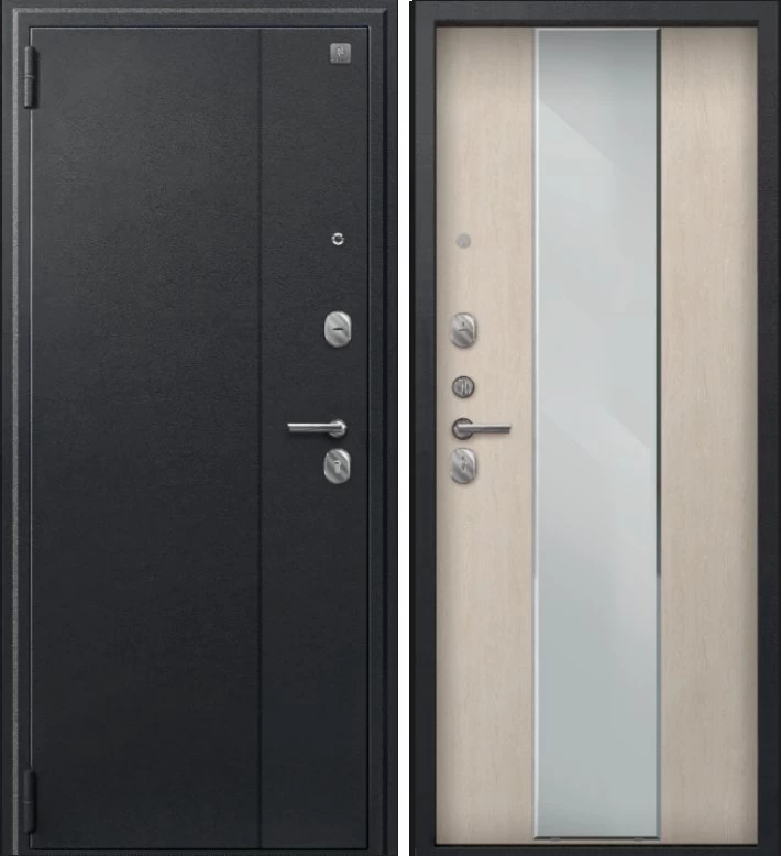 Надежная входная Дверь A-04 черный сатин - седой дуб зеркало премиум класса по цене 33 523 руб. Большая толщина стали защитит от проникновения в ваш дом, квартиру или коттедж. Используется очень качественная фурнитура: замки, цилиндры, ручки, защелки. Покрытие и отделка двери изготовлено под внимательным контролем производителя. Дверь имеет долгий срок службы и гарантию.