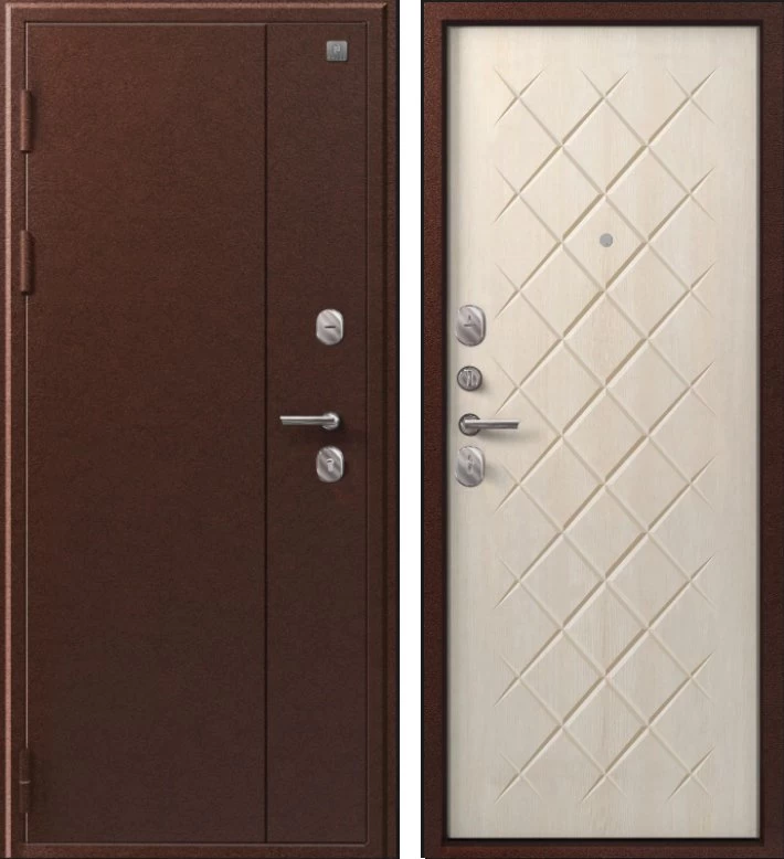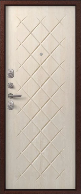 Надежная входная Дверь V-02 медь антик - седой дуб премиум класса по цене 36 273 руб. Большая толщина стали защитит от проникновения в ваш дом, квартиру или коттедж. Используется очень качественная фурнитура: замки, цилиндры, ручки, защелки. Покрытие и отделка двери изготовлено под внимательным контролем производителя. Дверь имеет долгий срок службы и гарантию.