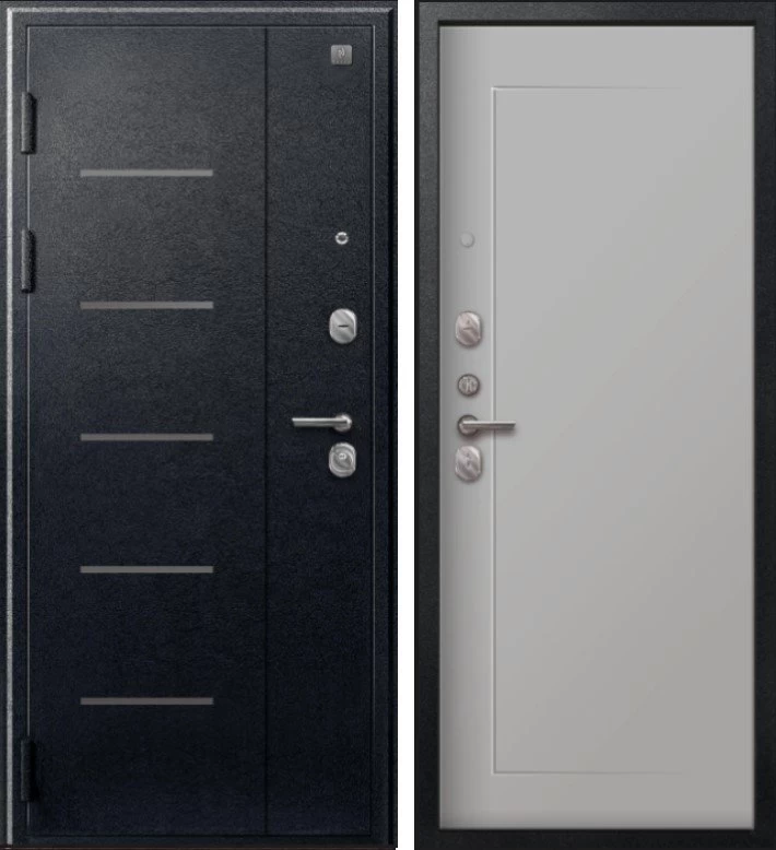 Надежная входная Дверь V-03 Черный муар - Кашемир сильвер премиум класса по цене 38 983 руб. Большая толщина стали защитит от проникновения в ваш дом, квартиру или коттедж. Используется очень качественная фурнитура: замки, цилиндры, ручки, защелки. Покрытие и отделка двери изготовлено под внимательным контролем производителя. Дверь имеет долгий срок службы и гарантию.