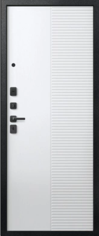Надежная входная Дверь V-18 Черный муар + Кашемир графит - Кашемир Белый премиум класса по цене 46 173 руб. Большая толщина стали защитит от проникновения в ваш дом, квартиру или коттедж. Используется очень качественная фурнитура: замки, цилиндры, ручки, защелки. Покрытие и отделка двери изготовлено под внимательным контролем производителя. Дверь имеет долгий срок службы и гарантию.